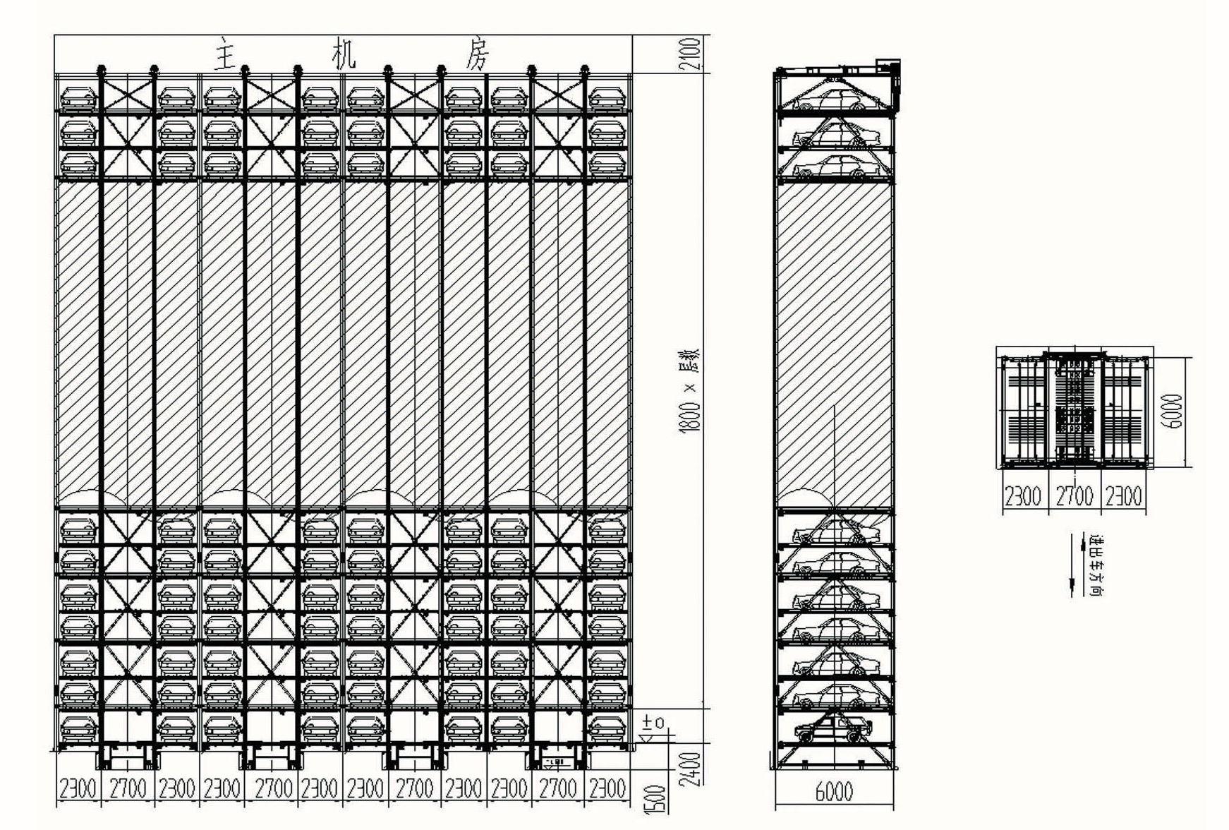 標(biāo)準(zhǔn)垂直升降式停車設(shè)備一般以二車位為一個(gè)層面,高可以建成25層,車輛容量數(shù)約為50臺(tái)高度約為50米,40臺(tái)高度約為36米。其占地面積較小,土地利用率較高,低震動(dòng),低噪音。該類型適用于高層辦公樓、住宅、醫(yī)院、綜合商業(yè)建筑等用地緊張的工程、新建獨(dú)立式立體車庫(kù)及老城區(qū)改造。