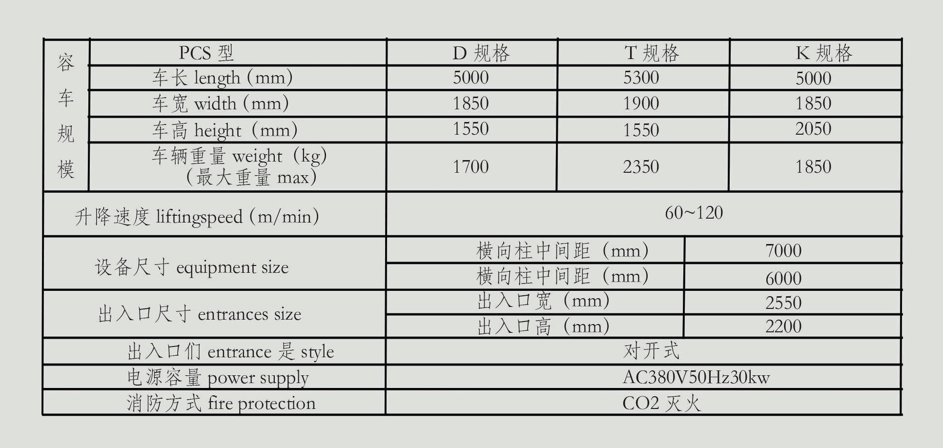 標(biāo)準(zhǔn)垂直升降式停車設(shè)備用提升機(jī)構(gòu)將車輛或載車板升降到指定層,然后用安裝在提升機(jī)構(gòu)上的橫移機(jī)構(gòu)將車輛或載車板送入存車位;或是相反,通過(guò)橫移機(jī)構(gòu)將車輛或載車板送入提升機(jī)構(gòu),提開機(jī)構(gòu)降到車輛出入口處,打開庫(kù)門,駕駛員將車輛開走。